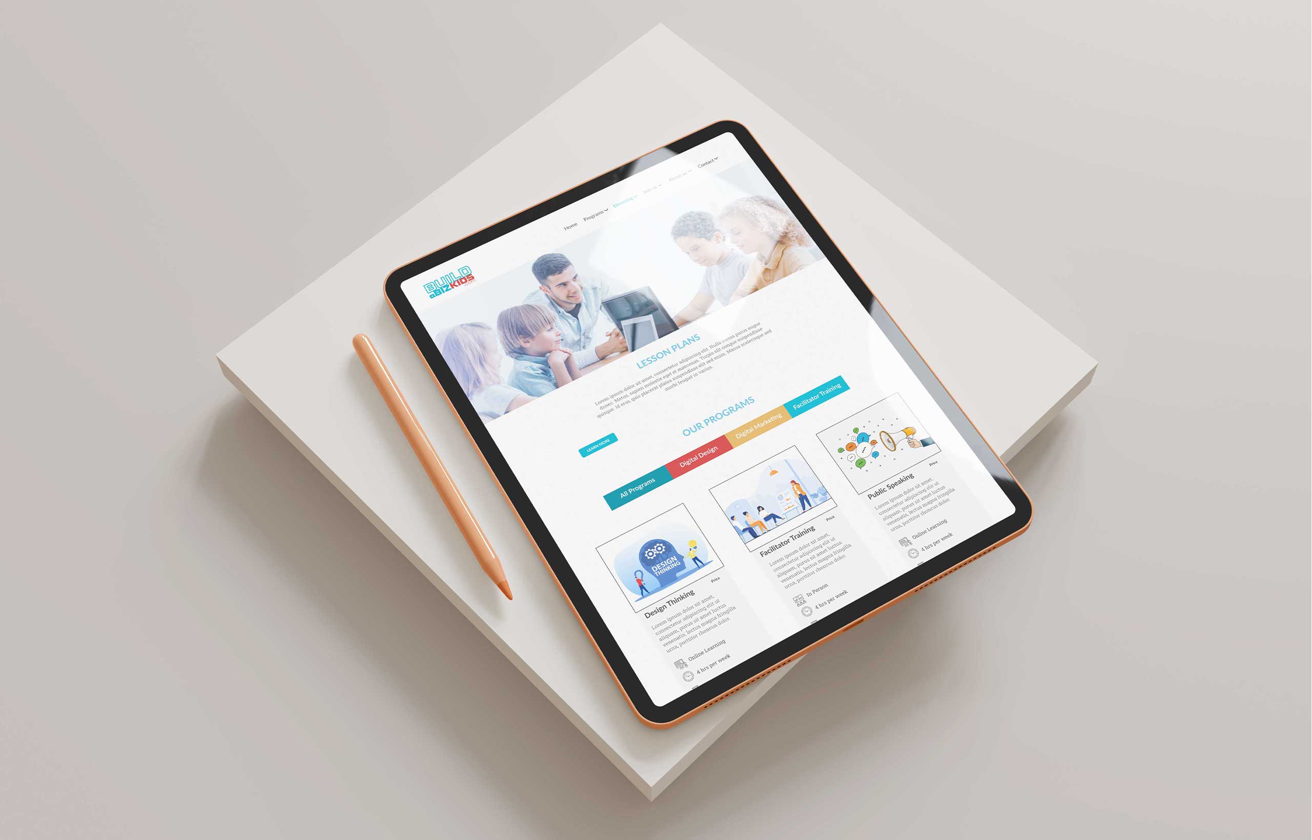 The Licensing page needed to have all the programs that BABK offers to institutions or schools. The programs needed to be divived into categories, so it will be easier for the user to search for the different types of courses that BABK has to offer.